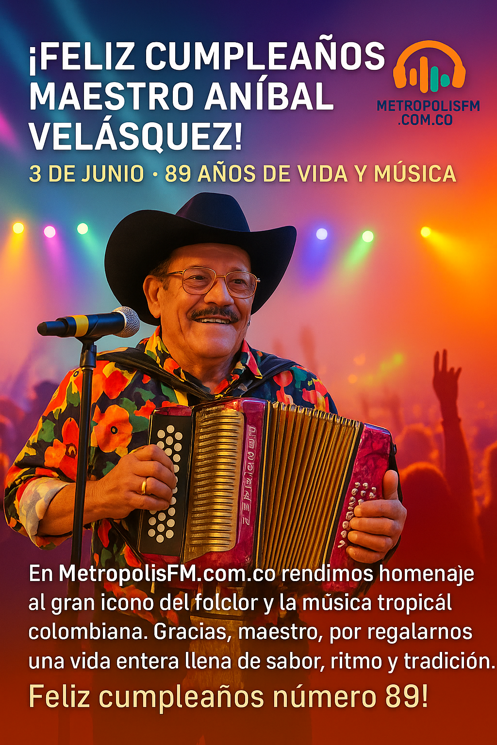 Hoy, 3 de junio, el maestro Aníbal Velásquez Hurtado celebra 89 años de vida, y lo hace con la misma pasión y energía que lo ha caracterizado a lo largo de su carrera musical. Con una trayectoria que abarca más de siete décadas, Velásquez Hurtado se ha consolidado como uno de los más grandes exponentes […]